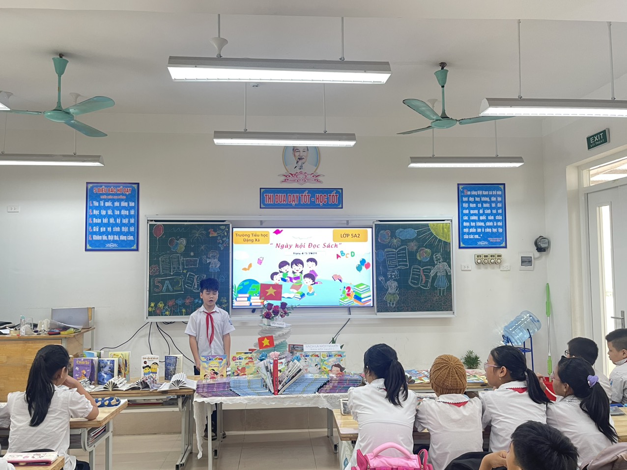 Người ta thường nói, sách là kho tàng tri thức của nhân loại. Sách là nguồn cung cấp tri thức khổng lồ, là chiếc chìa khóa vạn năng mở cửa lâu đài trí tuệ và tâm hồn con người. Có thể nói sách chính là người bạn tâm giao của mỗi người, và đọc sách từ lâu đã trở thành một nhu cầu cần thiết. Đọc sách chính là một quá trình tích lũy kiến thức, không chỉ giúp chúng ta mở rộng hiểu biết về chuyên môn mà sách còn giúp chúng ta hoàn thiện bản thân và nuôi dưỡng tâm hồn. Chính vì vậy để giúp cho các bạn học sinh trong toàn liên đội tích cực chủ động trang bị những kiến thức các môn học từ nguồn sách báo của thư viện nhà trường, đồng thời tạo phong trào thi đua “ chăm ngoan học giỏi” xuyên suốt năm học. Hôm nay ngày 8/5/2024 Trường Tiểu học Đặng Xá long trọng tổ chức “Ngày hội đọc sách” với chủ đề “Phát huy hào khí Thăng Long – Hà Nội, Xây dựng thủ đô Văn hiến - Văn minh - Hiện đại” với nhiều hoạt động sôi nổi như: trưng bày sách, hoạt động văn nghệ, thi kể chuyện tuyên truyền giới thiệu sách, viết cảm nhận sau khi đọc sách,..... Các loại sách được trưng bày với nhiều thể loại phong phú, đa dạng như: sách về Bác Hồ, sách thiếu nhi, sách văn học, sách khoa học, báo thiếu nhi, truyện tranh, STEM....