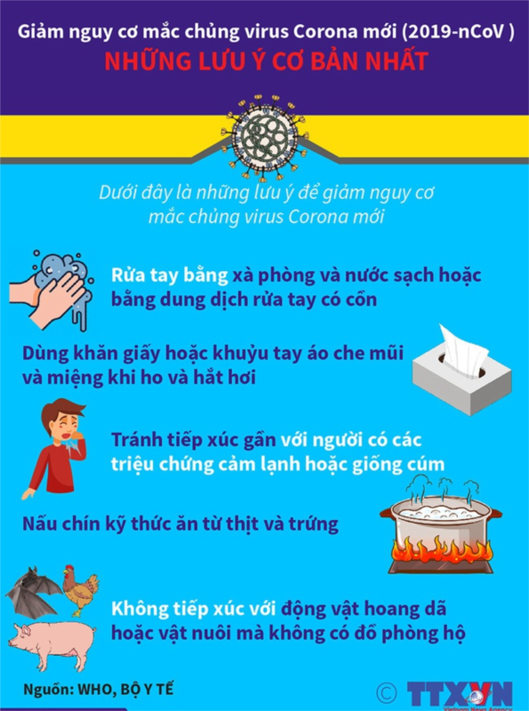 Để giảm nguy cơ mắc chủng virus corona mới (2019-nCoV), mỗi người cần ghi nhớ những lưu ý cơ bản là: Thường xuyên rửa tay bằng xà phòng và nước sạch hoặc bằng dung dịch rửa tay có cồn.