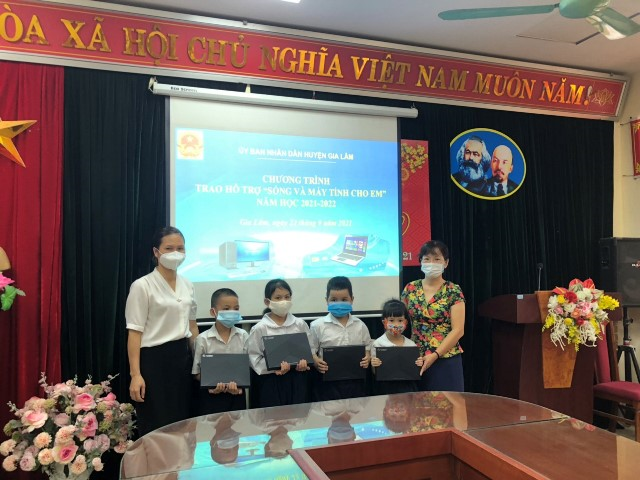 Chiều ngày 22/9/2021, thay mặt Hội chữ thập đỏ huyện Gia Lâm và phòng GDĐT huyện, Ban giám hiệu, Công đoàn trường đã trao tặng 04 máy tính bảng mới cho 04 HS có hoàn cảnh khó khăn của nhà trường qua Chương trình "Sóng và Máy tính cho em"