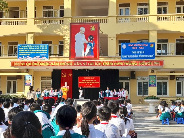 Với ý nghĩa đó ngày 09/11/2020, thay mặt BGH nhà trường đồng chí Nguyễn Thị Hạnh - Phó Hiệu trưởng nhà trường đã đọc diễn văn khai mạc hưởng ứng ngày pháp luật nước Cộng hòa xã hội chủ nghĩa Việt Nam năm 2020. Sau đó là các câu hỏi về kiến thức pháp luật được các e học sinh nhà trường hào hứng tìm hiểu và trả lời.