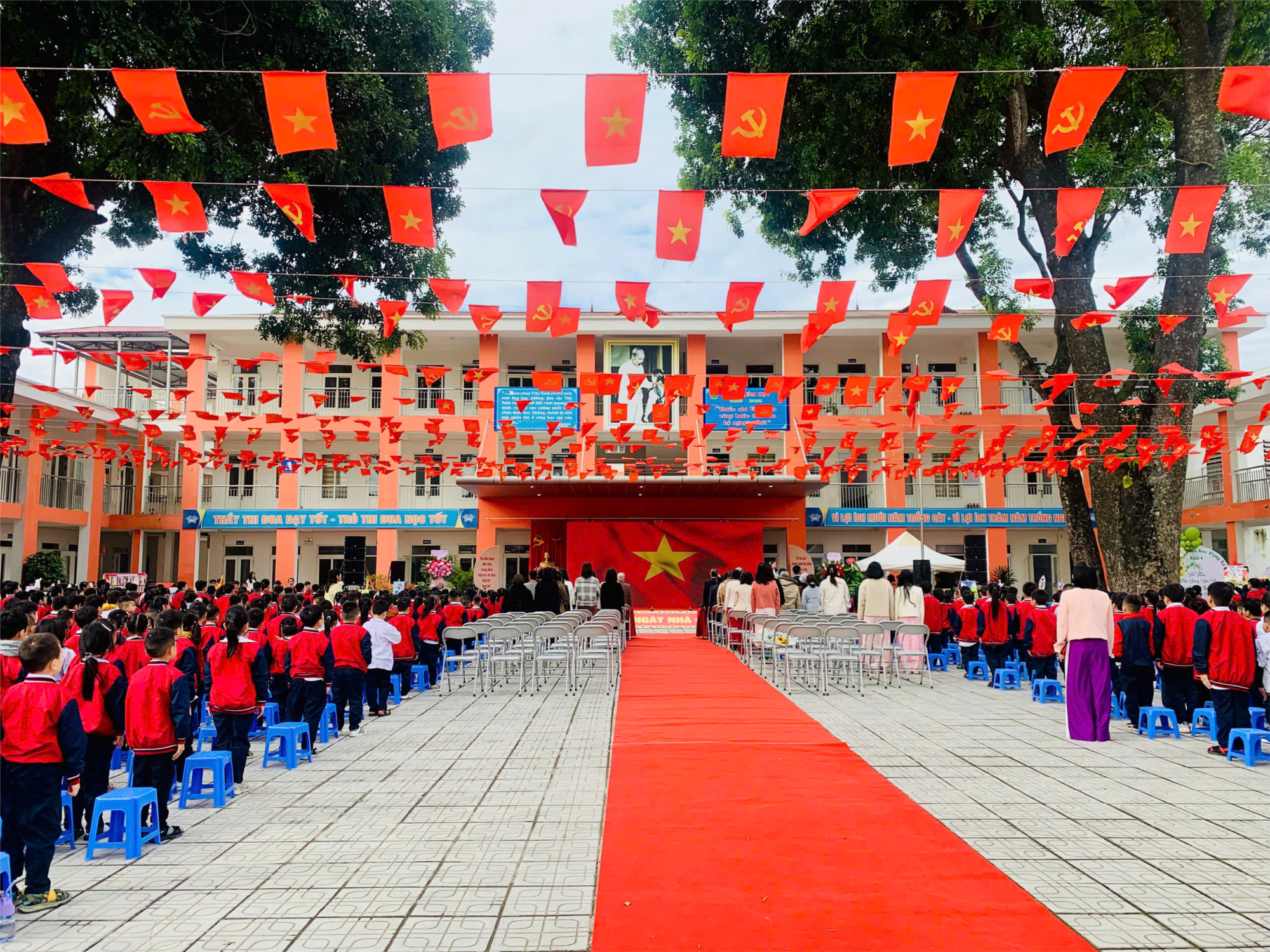 Tiếp theo chương trình, cô giáo Lê Lệ Hằng – Bí thư Chi bộ, Hiệu trưởng nhà trường – đã trình bày Diễn văn chào mừng. Trong diễn văn, cô khẳng định Trường Tiểu học Đặng Xá luôn tự hào với những thành tựu nổi bật: cơ sở vật chất hiện đại, môi trường giáo dục thân thiện, các phong trào thi đua sôi nổi và học sinh chăm ngoan – tự tin – sáng tạo. Những kết quả ấy là minh chứng cho sự tận tâm, nỗ lực không ngừng của đội ngũ cán bộ, giáo viên; sự quan tâm của lãnh đạo địa phương; cùng sự đồng hành bền bỉ của phụ huynh và cộng đồng.