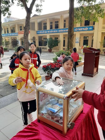 Học sinh nhà trường quyên góp quỹ từ những đồng tiền được "lì xì" đầu năm mới