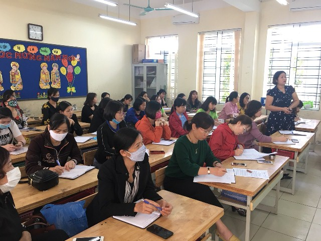 Cũng tại buổi tuyên truyền đ/c Lê Lệ Hằng- Bí thư chi Bộ- Hiệu trưởng nhà trường đã đề ra những nhiệm vụ cơ bản cần chuẩn bị khi học sinh chuẩn bị trở lại trường học theo từng nội dung cụ thể như: Tổng vệ sinh môi trường, khử khuẩn toàn bộ khu vực trường, lớp trước khi đón học sinh trở lại học: Sân chơi, phòng học, Thư viện, nhà thể chất, nhà vệ sinh... (nền nhà, hành lang, bàn ghế, cửa ra vào, cầu thang, tay nắm cửa, tay vịn cầu thang...). Các đồ dùng học tập trong lớp, bàn phím máy tính, đồ dùng cá nhân (ca, cốc, thìa, khăn mặt, chăn, gối ...).